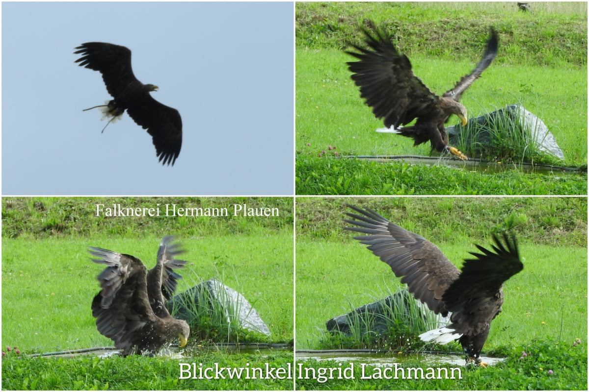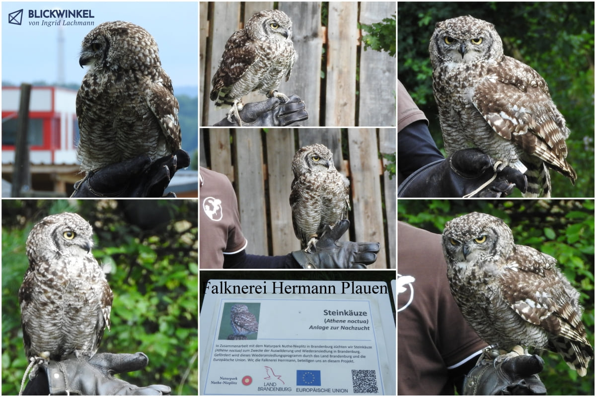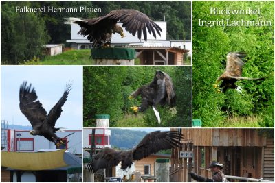 Mehrere Male habe ich schon die tollen Vorführungen in der Falknerei angesehen und ich bin immer wieder begeistert. Die folgenden Collagen in der Galerie sprechen davon. Meine Hochachtung und Bewunderung gilt dem gesamten Team und meine Ansichtskarten sind ein Geschenk und ein Dankeschön. Von Herzen gern teile ich den Link zu der Webseite : https://falknerei-herrmann.de/pages/de/start.php